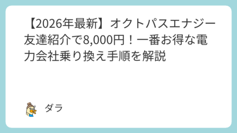 お金の話 【2026年最新】オクトパスエナジー友達紹介で8,000円!一番お得な電力会社乗り換え手順を解説
